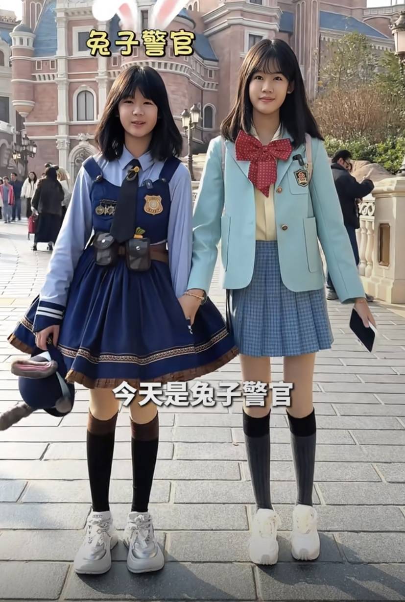 妈妈鲍蕾提前就给姐妹俩准备好了衣服,小叶子最喜欢的兔子警官、贝儿打扮的是平民。