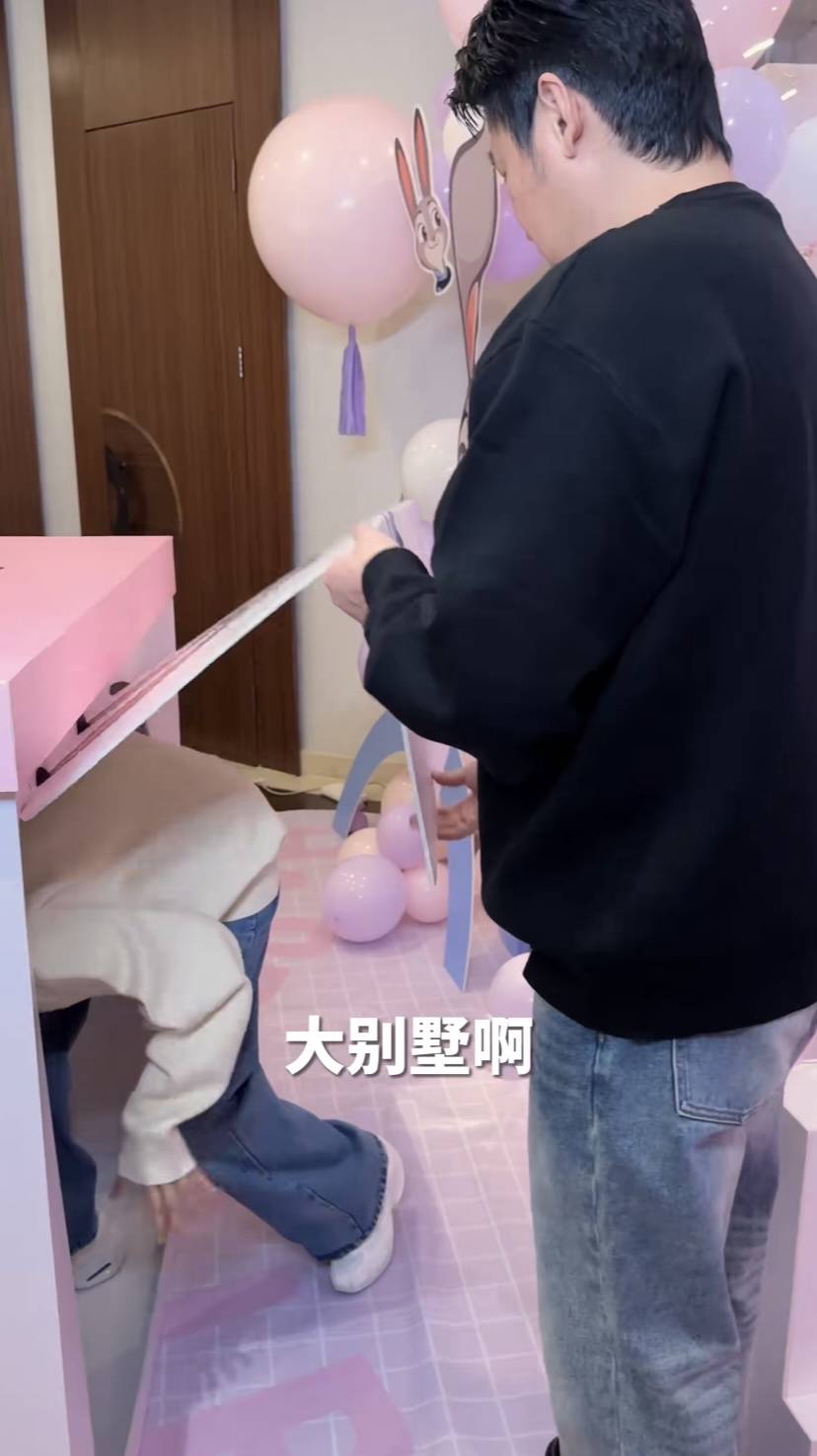 算着女儿快要回来了,陆毅和鲍蕾钻进一个大大的粉色箱子里,准备给女儿惊喜。