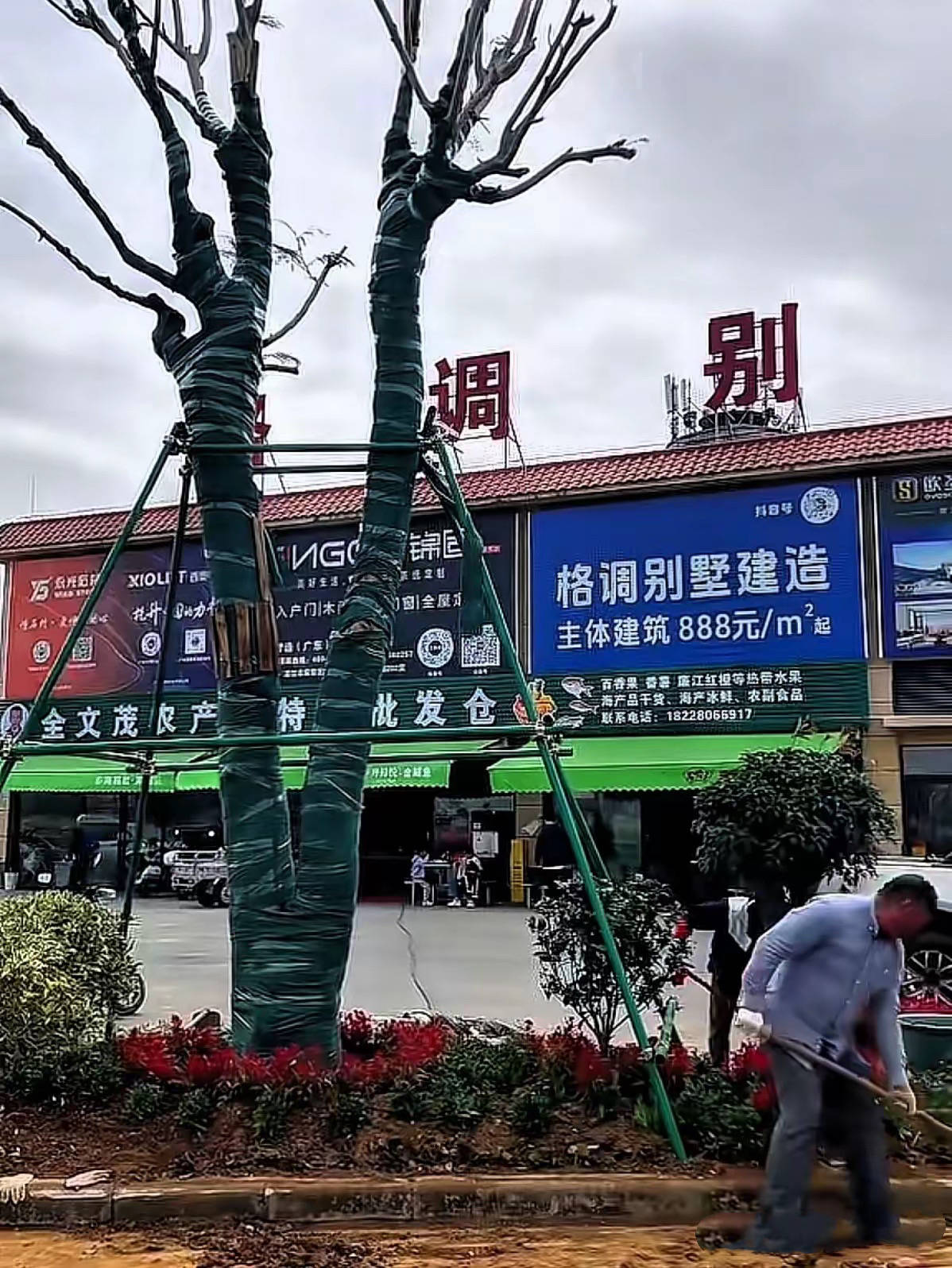 知道游客们喜欢凤凰树,全红婵爸爸还花高价买来两棵环抱在一起的凤凰树,种在了商店的门口。