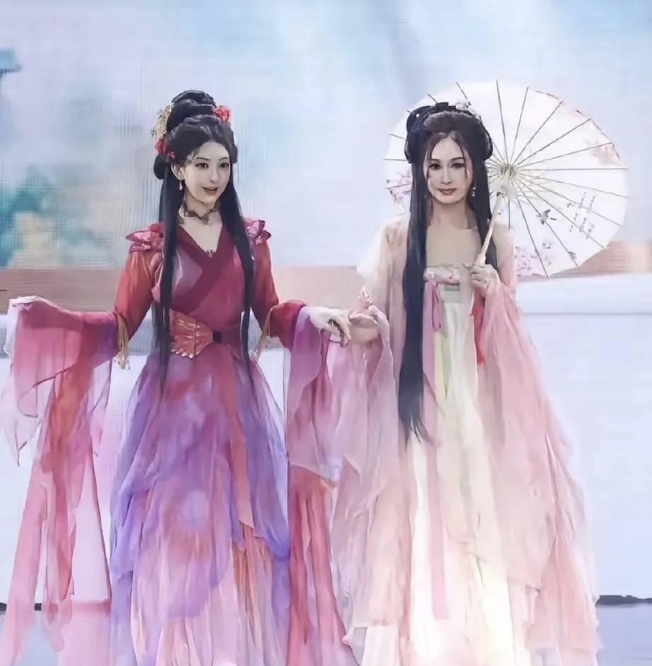 方媛的红裙,在轻盈中带着几分仙气,更多了几分飒美。两个人站在一起,也太养眼了。