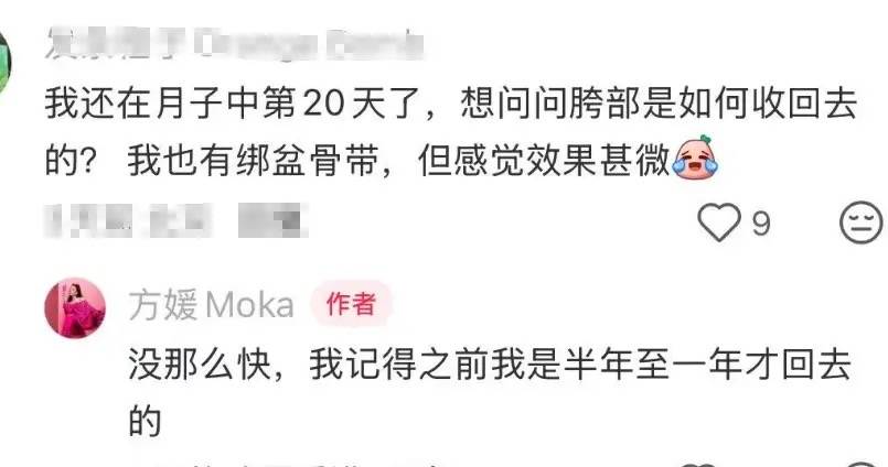 方媛也从来都不隐藏,她回复网友说胯部不会那么快收回去的,之前两胎的时候都是半年到一年才能回去。