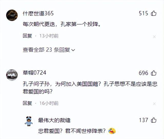 大多数人主要还是抓着他的国籍说事,说作为孔子的后人怎么能跑到美国呢,甚至还给扣上了“背叛”的帽子。