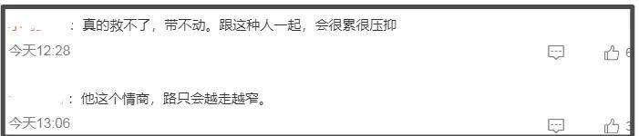 任何行业都是和气生财,朱孝天看到任何与F4相关的话题都是反驳否认,尤其是一些鸡毛蒜皮的小事都要回怼,不给合作方任何脸面。在某种程度上,是不值得信任的合作伙伴。从F4演唱会一事来看,朱孝天目前的情绪状况也不适合合体F4,谁也无法预知他合体之后会发生哪些状况,会有很多的不确定。也因此,有网友吐槽他这个人没救了,完全带不动,跟他相处会很压抑,只会把路越走越窄。