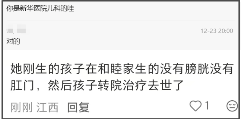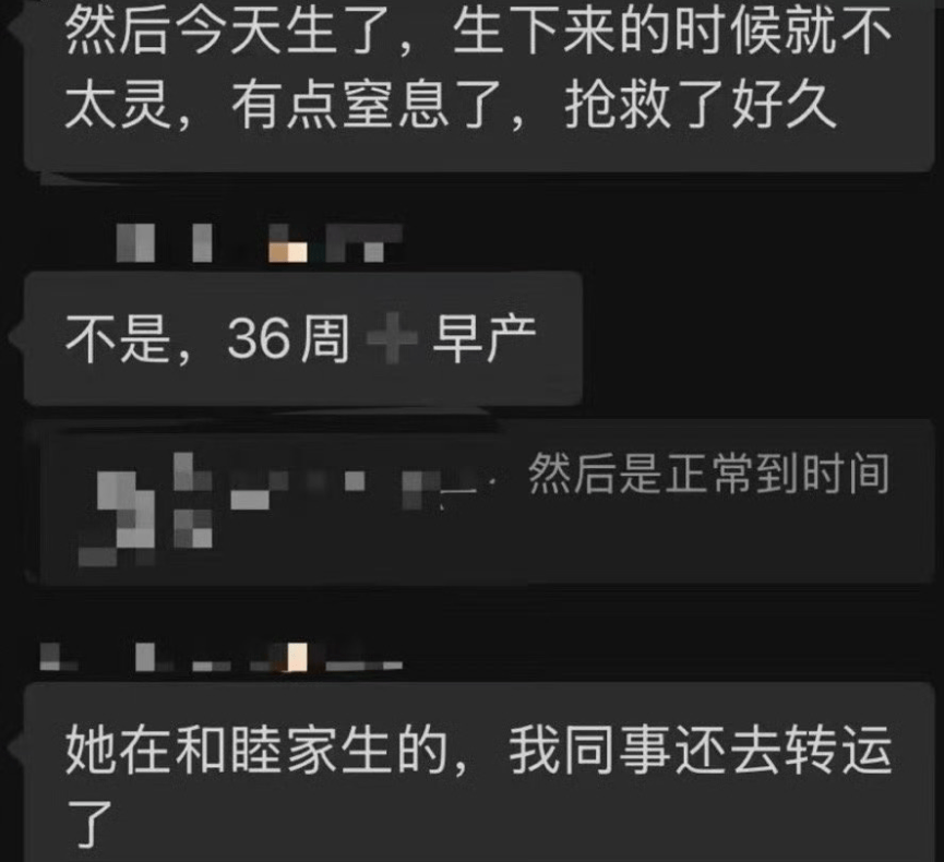 爆料源头是几段聊天记录,爆料人自称来自新华医院儿科,按照爆料人的说法,阚清子高龄怀孕,孩子的情况不是很好,生下来就有缺陷,她在某睦家生下宝宝之后,又转院到新华医院,结果孩子还是没保住。