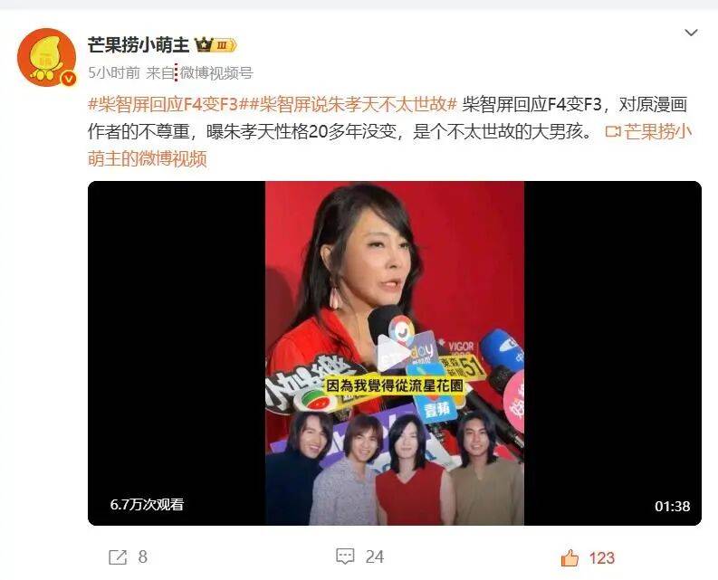 面对“F4 变 F3”的追问,她直接把话撂在台面上:“这说法太荒谬,更是对漫画原作者的不尊重!”