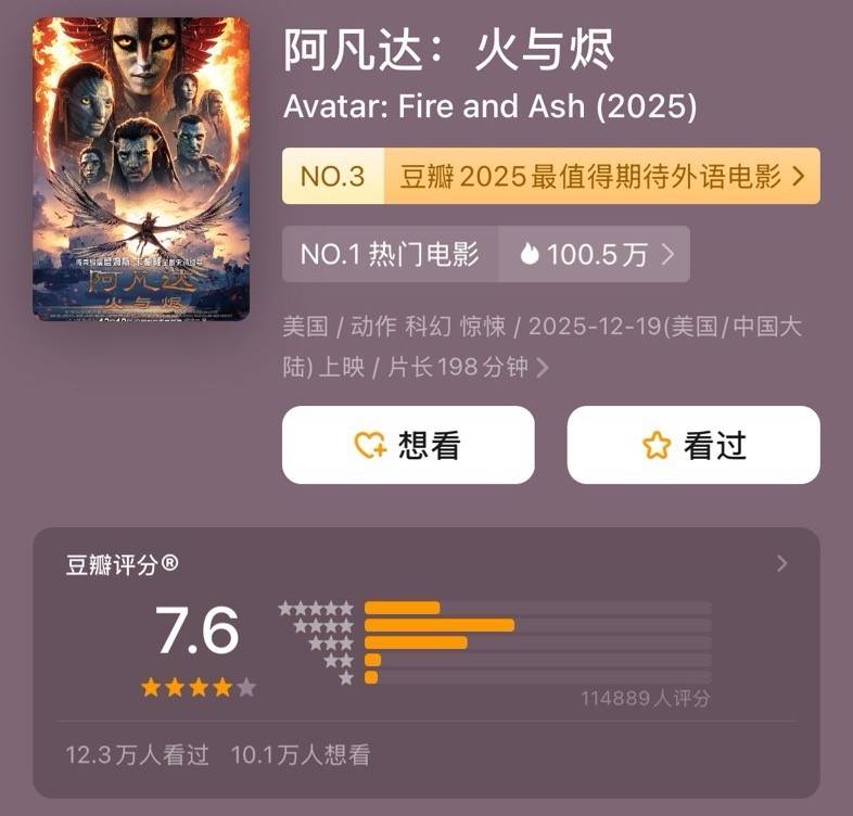 考虑到高昂的成本——官方暂未披露,但有媒体报道其制作成本为3.5亿美元,宣发费用约1.5亿美元——《阿凡达3》似乎应该拿出更好的成绩。