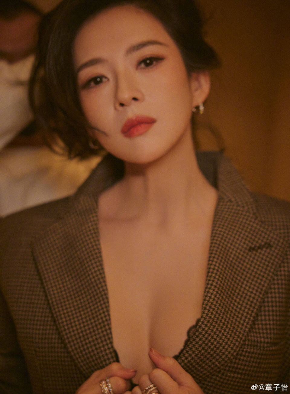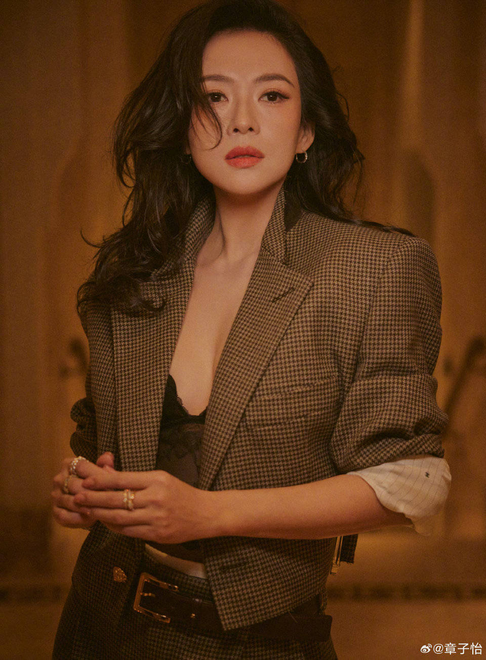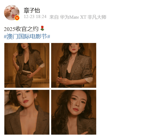 章子怡本来就是一个情商特别高而且还很真诚的人,在12月23日,章子怡在自己的社交平台上晒出了几张美照,正好当天是参加第十六届澳门电影节活动,走红毯的时候也是妥妥的女王范了,内穿黑蕾丝完美秀出事业线,外穿格子西装气场十足。