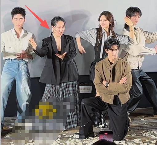 她就是站在赵今麦身边的那位女生,身穿黑色西装外套,大胆地将事业线露了出来。