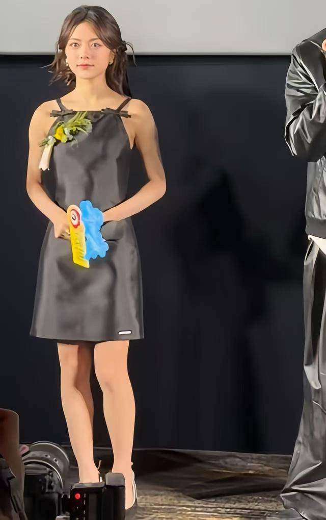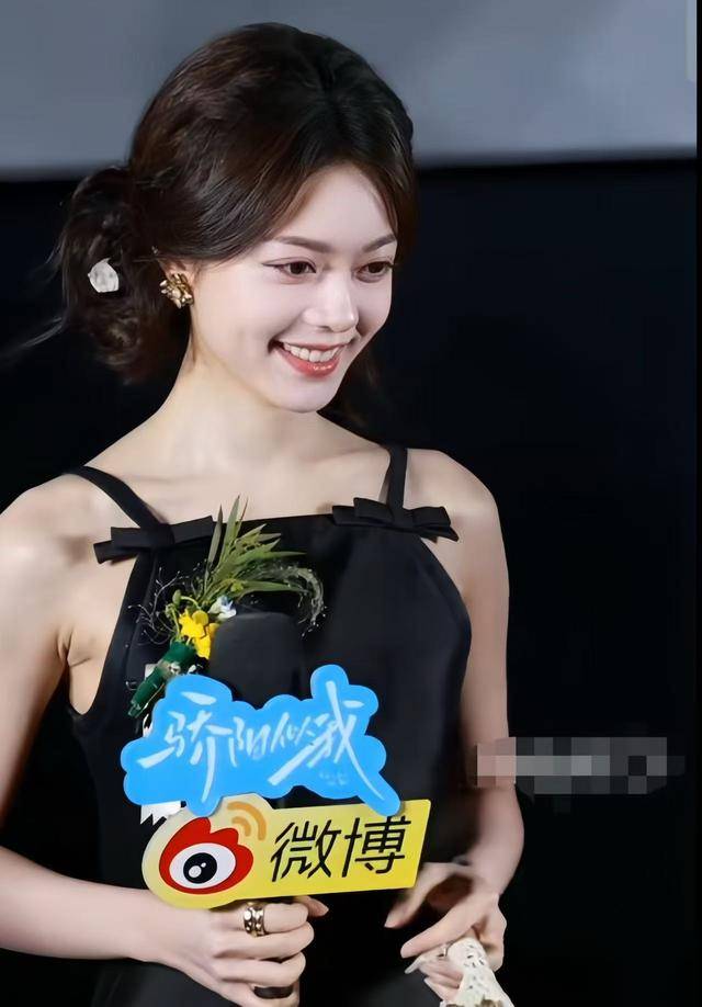 再看看赵今麦的造型,当天第一套是黑色吊带裙,搭配小高跟鞋,头发梳成了盘发。