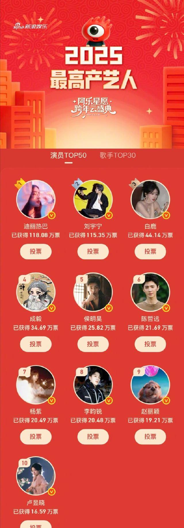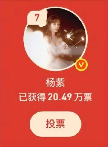 可即使如此,杨紫还是凭借超高的人气,获得了网友的20万投票数,目前排在第七名。