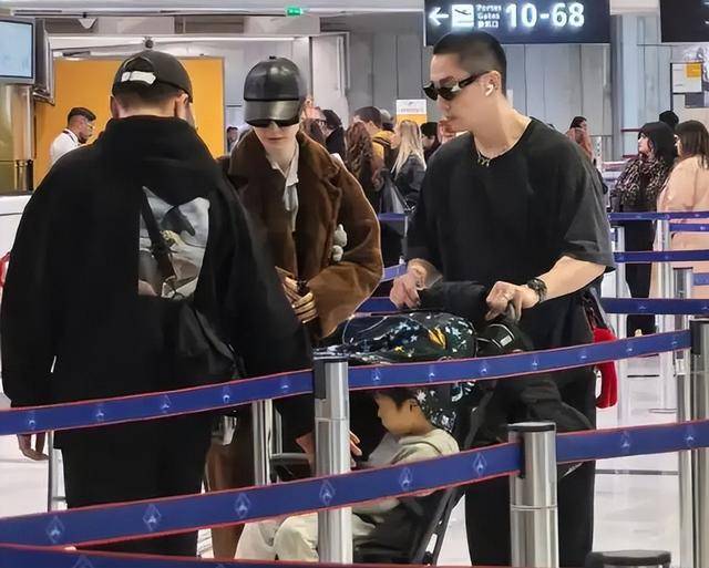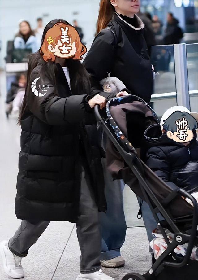 12月23日,有网友在机场偶遇了戚薇一家四口从新加坡旅游回国。