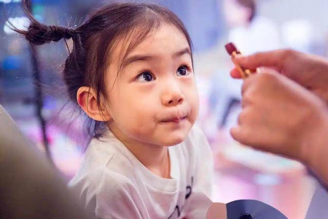 她的眼神里充满了母爱,时刻关注着孩子的一举一动。