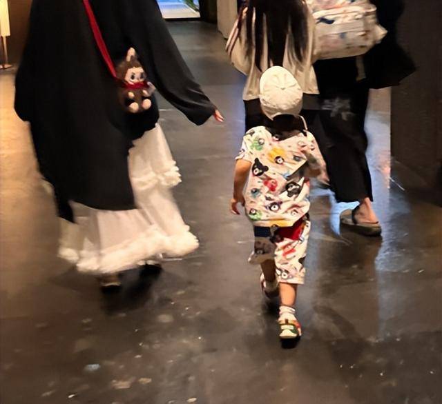 三岁的Seven也十分可爱,他跟在妈妈身边走得稳稳当当,戴着帽子的样子软萌可爱,侧脸圆嘟嘟的。