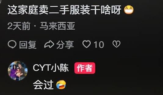 有网友调侃陈昱涛:你们这种家庭,还卖啥二手服装啊?