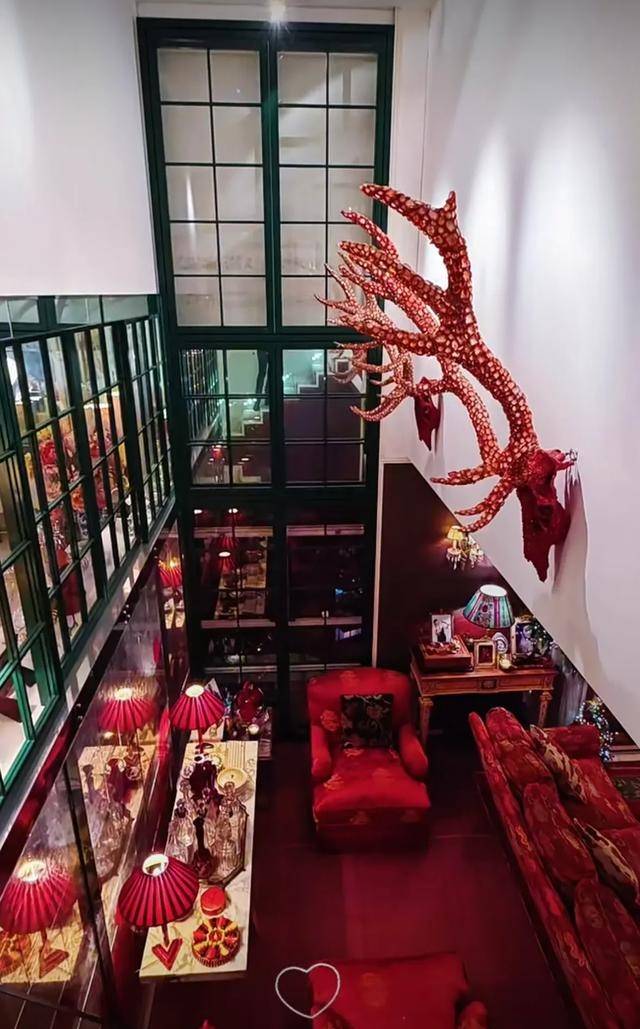 红色圣诞帽戴在两只宠物狗头上。客厅堆满迪奥与香奈儿的礼盒。近两米的圣诞树几乎触到天花板,灯串闪烁。这座香港三层豪宅估值十亿港元,节日场景里没有孩子的身影。
