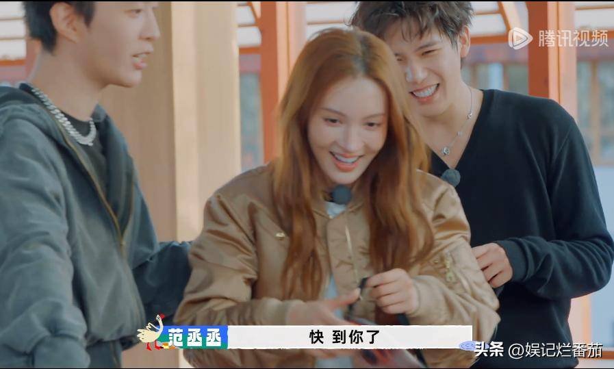 还是在整蛊王安宇那段,金晨被王安宇猜出来要换她被打时,范丞丞一个劲儿的催促金晨快上,一直说让她赶紧的吧。
