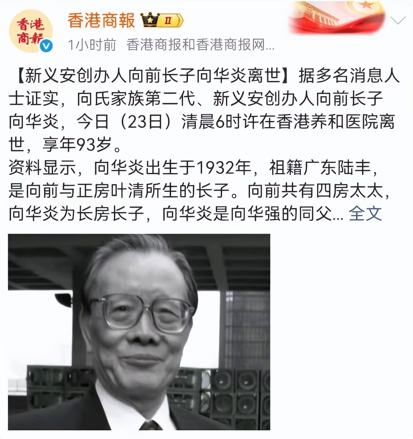 清晨6点钟,新义安创办人向前长子向华炎病逝,他曾是香港新义安第二代“龙头”,二十来岁就掌管新义安,一下子掌管了37年。