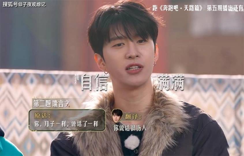 更出色的是馕言文翻译那一块,范丞丞好心拍她手臂提醒答题,她立刻就生气地叫嚷着「你老是拍我干什么。」