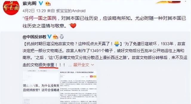 4月2日,他再次发文质疑:“日本占领北京八年,为何没有抢走故宫文物并烧毁故宫?这符合侵略者的本性吗?”