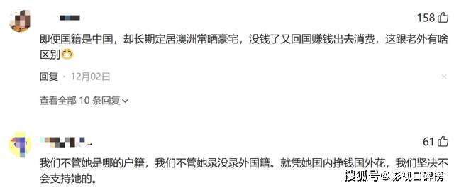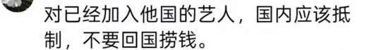 有网友表示:凭借她国内挣钱国外花,我们坚决不会支持她的!