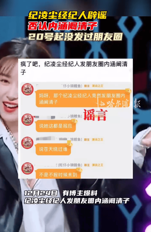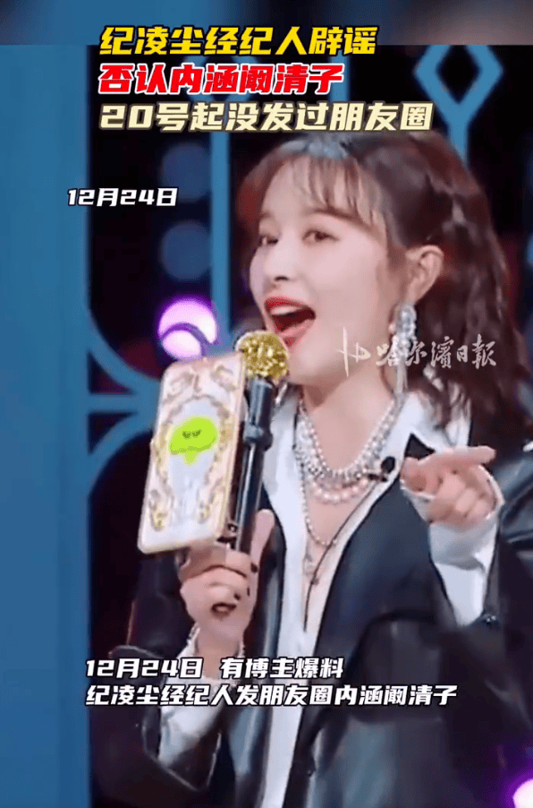 12月24日,有博主爆料纪凌尘经纪人发朋友圈内涵阚清子。
