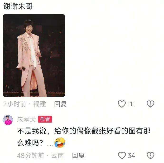 朱孝天却在粉丝群回应:“他说好几次了,我未收到消息,场面话听听就算了”,被批撕毁对方递来的台阶。
