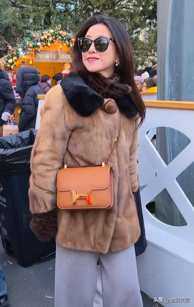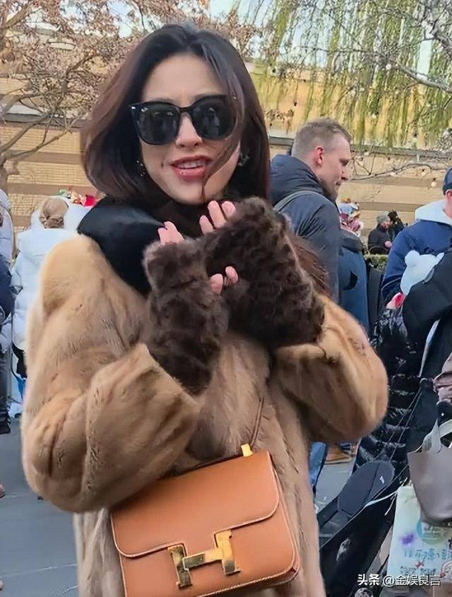 当时的朱珠状态十分松弛,完全没有明星架子,穿着贵气的貂皮大衣。
