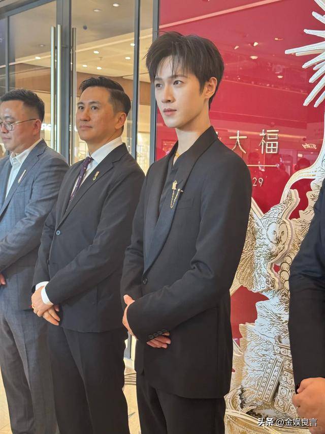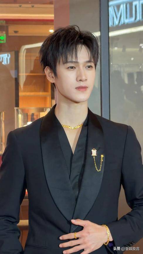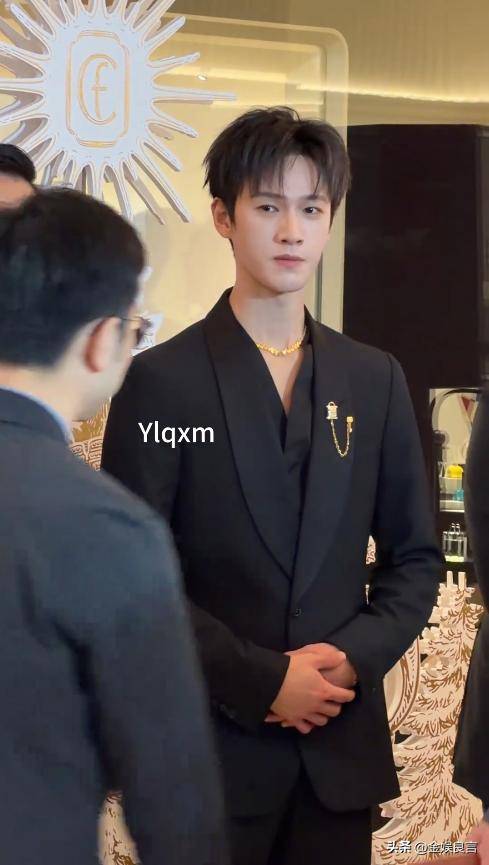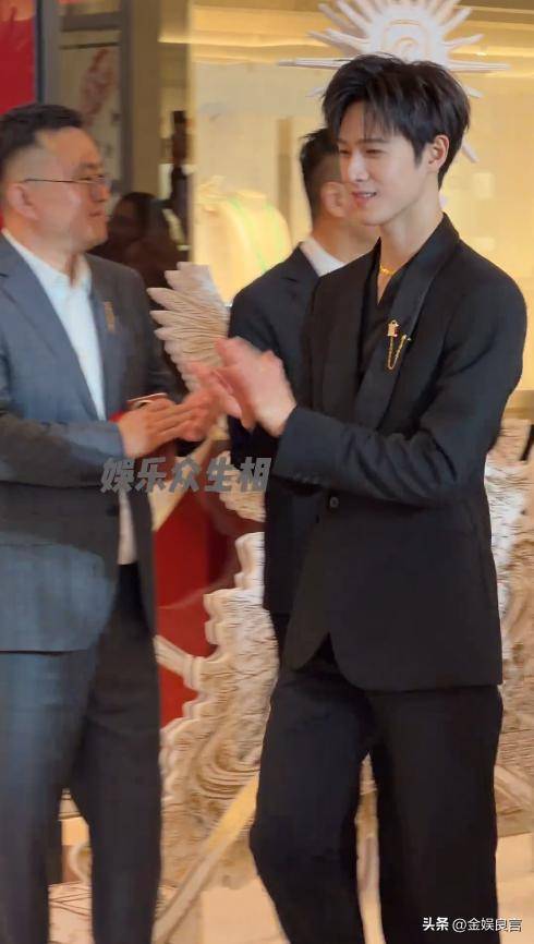 这次他亮相上海某黄金品牌新店剪彩,造型风格彻底转变。