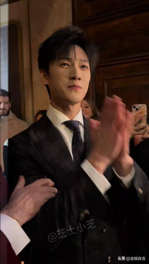 走在秀场边的样子,既有东方男性的儒雅,又不失年轻人的朝气。
