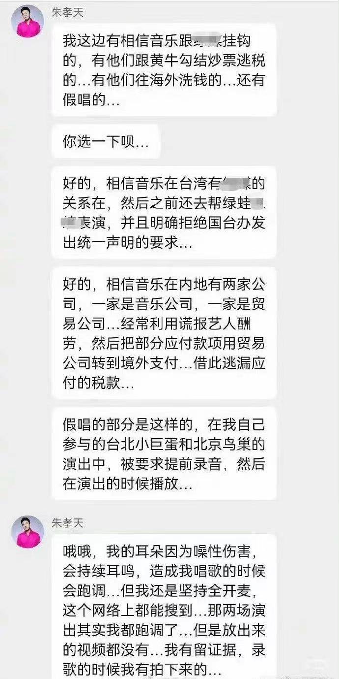 这个爆料一旦被税务部门看到,估计会对相信音乐两家公司进行税收的调查,如果真的偷漏税,后果不堪设想,但这个必须要有证据来支撑,如果是假的,朱孝天可能就是诽谤和造谣。
