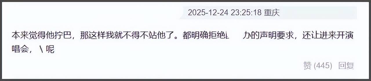 公司这种傲慢的做法也惹怒网友。要知道,朱孝天点名了五月天拒绝发出统一声明,这就解释了为何每次到关键表态他们就沉默。如今网友直接呼吁严查,不管是立场问题,还是税务问题,大家对此都是零容忍,甚至开始抵制五月天来大陆开演唱会。