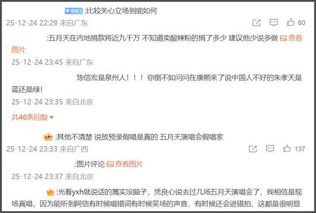 不少营销号评论区都有粉丝在控评洗白,问就是五月天捐款了、五月天没假唱、五月天是黄牛最不喜欢的艺人……但关键时刻从来不转发的是五月天,闹上热搜也不回应的也是五月天,这如何让网友信服?
