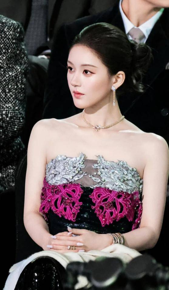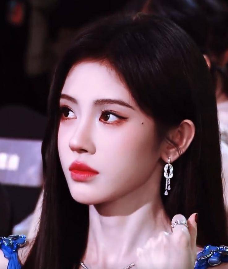 不过不得不承认,鞠婧祎的颜值太能打了,一套蓝色的礼服配黑长直的头发,摄像机怎么拍,都是冷艳的大美人,360度无死角。