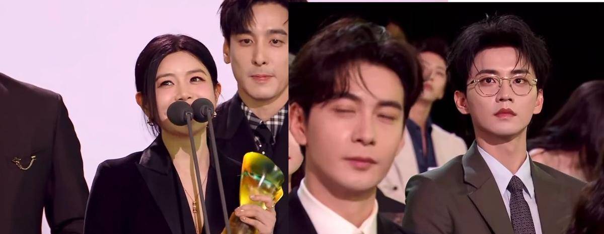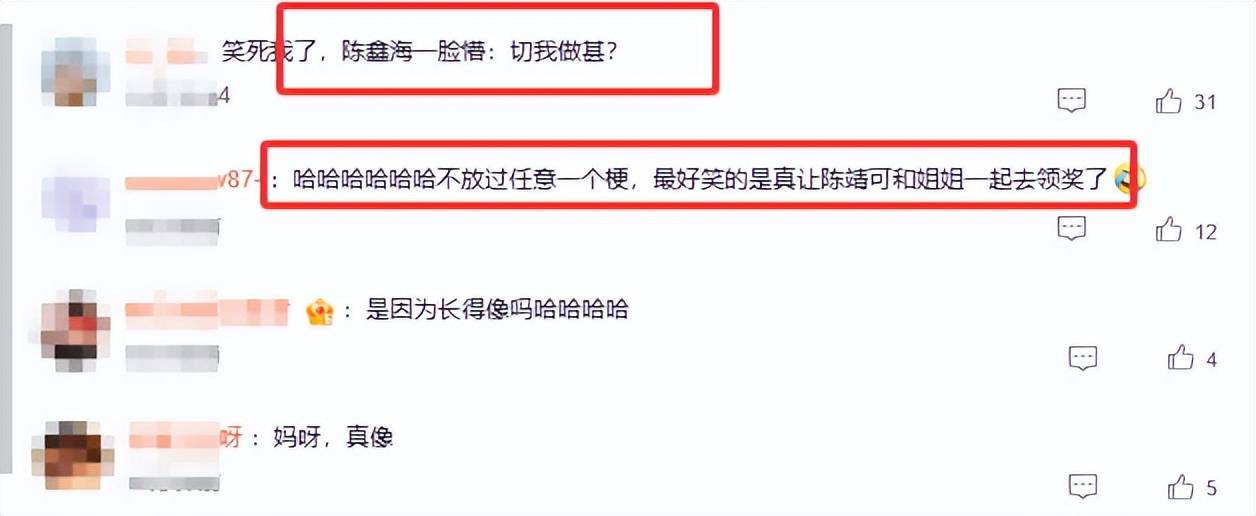 还有一场替身文学,当陈妍希上台发表感言,感谢弟弟周柯宇时,镜头却突然对准了台下的陈鑫海,两人颜值是有几分相似,可这替身文学让陈鑫海尴尬了。