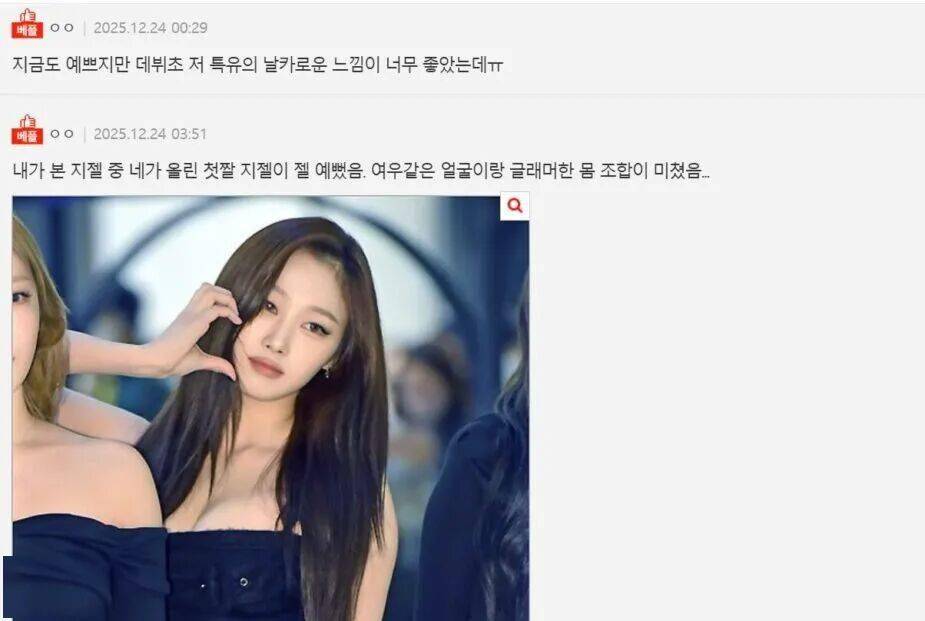 “她现在也漂亮,但我真的好爱她出道初期那种锋利又特别的氛围”一条高赞评论道出了不少人的心声。另一条评论则更具体:“在我见过的所有Giselle形象中,你发的第一张照片里的她最美。那种狐狸系长相+华丽身材的组合简直绝了…”类似“个人更喜欢上面那张…更符合我的审美”、“第一张照片里,她那天真的美得惊人…那种天然纤细又立体的五官组合让她非常漂亮”等声音层出不穷,显示出对偶像原生面貌的某种怀念。