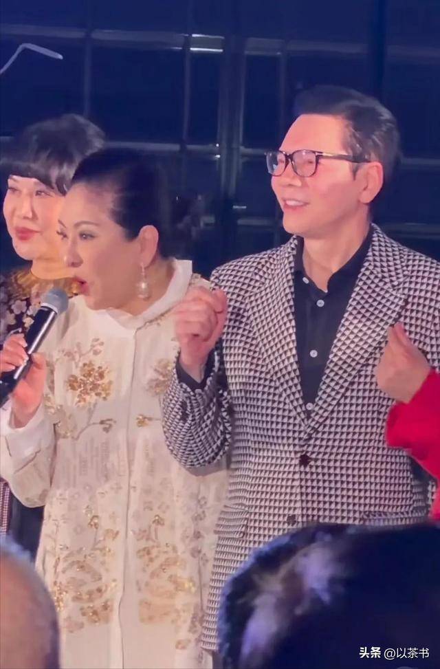 台下宾客们跟着哼唱,歌声中流淌着岁月沉淀下的情谊。女星阵容也毫不逊色。袁咏仪身着黑色西装式长衫,风姿绰约,独自到场却全程笑容满面,与吕良伟夫妇热络交谈。