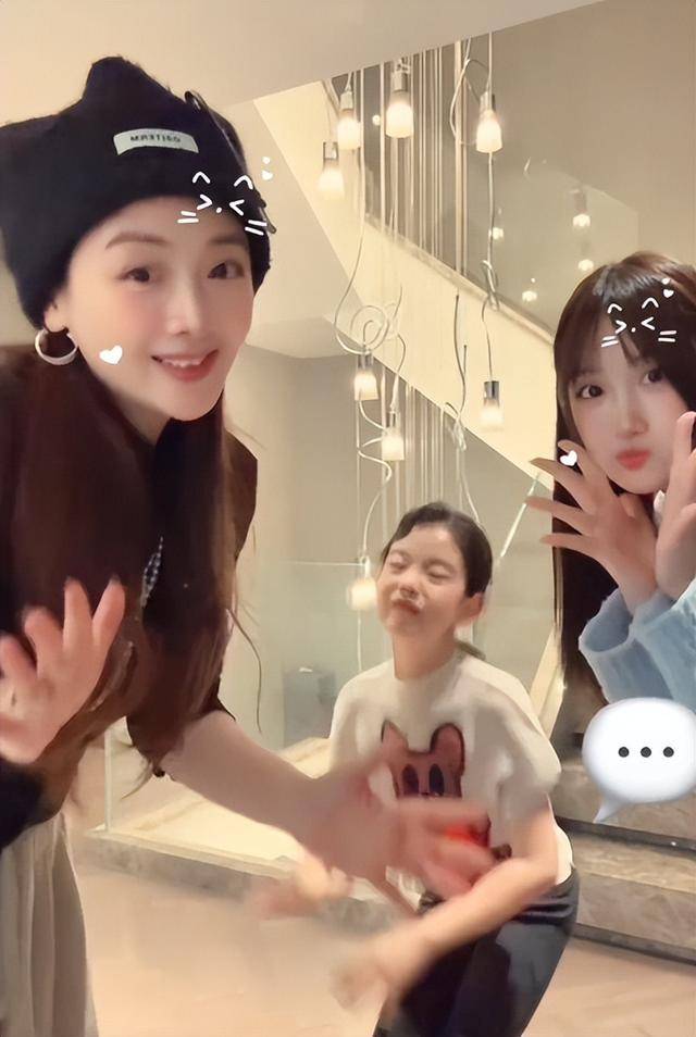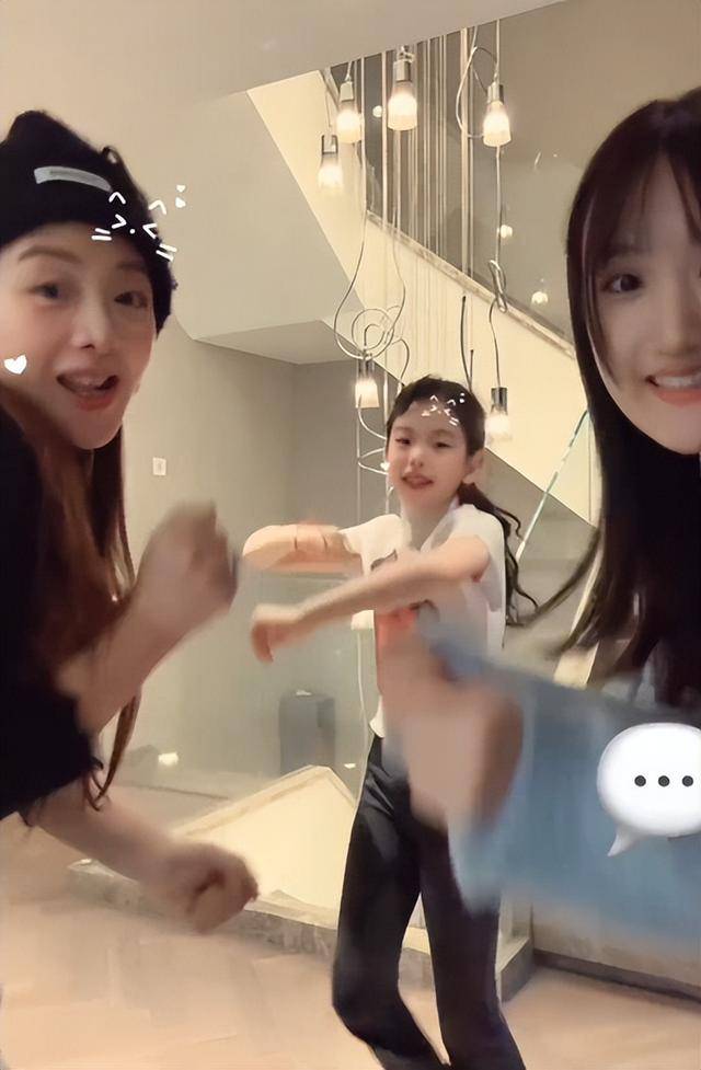 小年糕作为主角站在中间,小李琳和大女儿则站在两边伴舞,场面非常和谐。