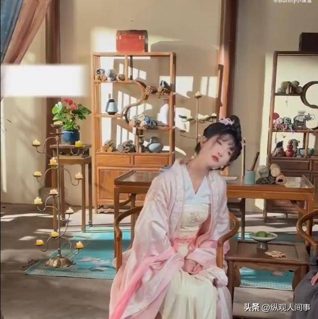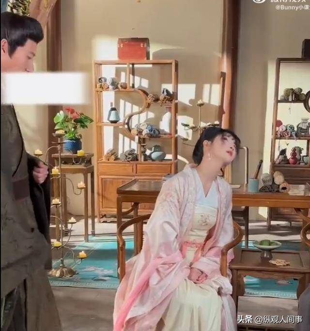 她穿着一身精致的古装戏服,发髻被工作人员用无数个夹子牢牢固定着,每一个细节都透着剧组对这部剧的用心,也展现出张乙萌对角色的尊重。