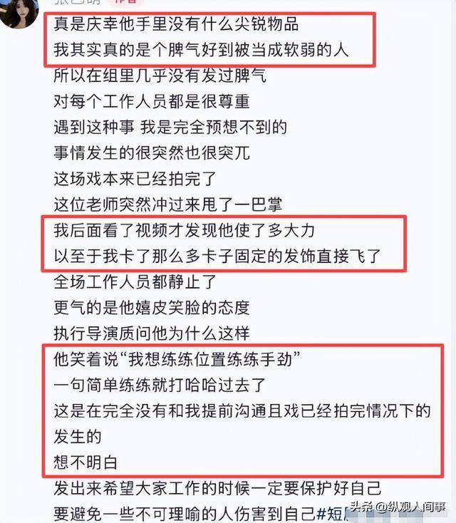剧组的工作人员也被这突如其来的一幕惊呆了,整个片场瞬间陷入死一般的寂静,所有人的目光都集中在了打人的男群演和满脸错愕的张乙萌身上。