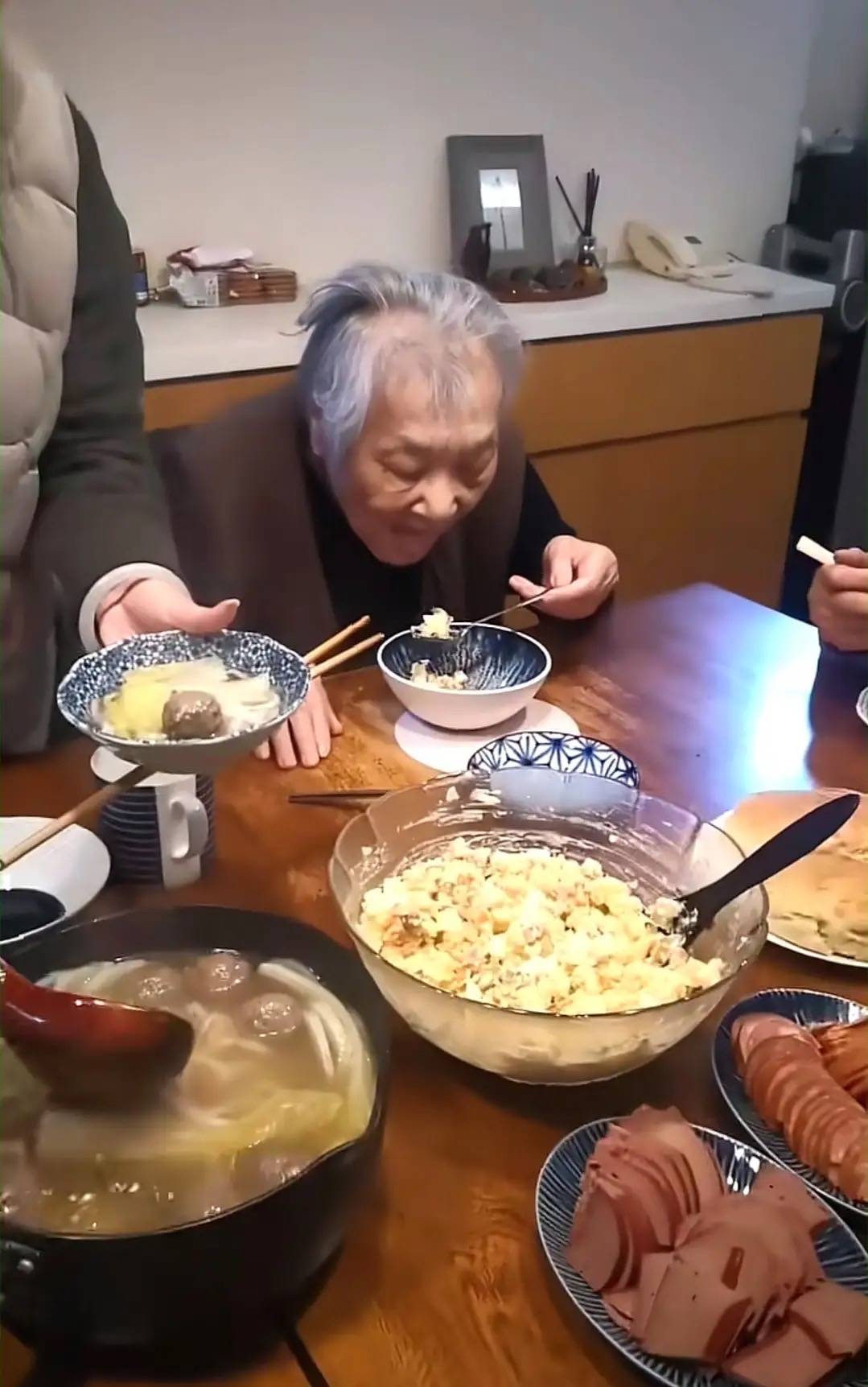 李苒苒年纪大了,她满头白发、看着特别瘦。其实91岁的老人了,瘦一点也是好事,不会引起三高。