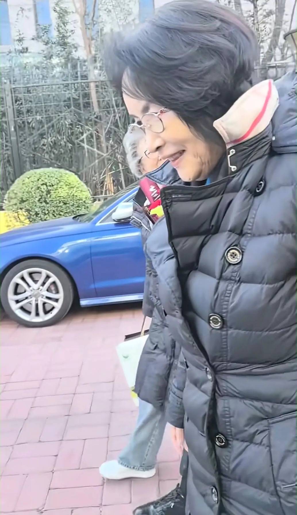 宋晓英染了头发,她也穿着黑色羽绒服、戴着老花镜,只是因为头发染黑了、和宋春丽一对比,就像两代人一般。