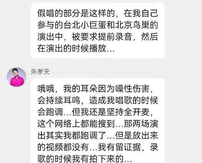 而在那两场演出事后发出来的视频里,朱孝天唱歌的状态根本没有跑调的音,为了拿到这个公司怂恿明星“假唱”证据,朱孝天从那个时候开始就偷偷录音了,留下了证据。