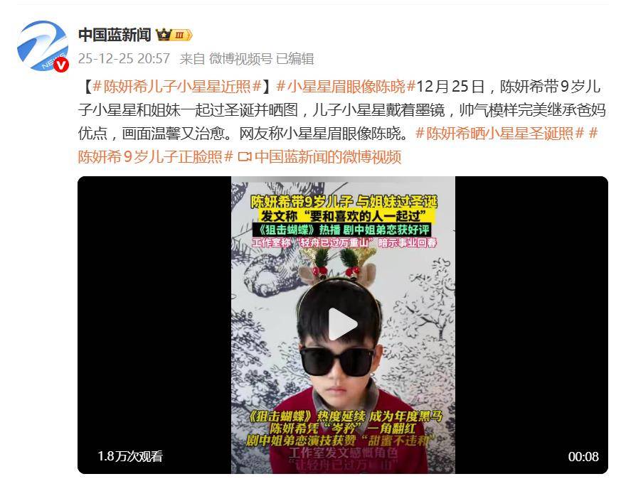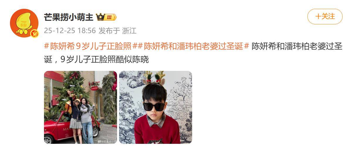 这个圣诞节,陈妍希的一则动态直接让网友把焦点从节日聚会,挪到了她儿子的脸上。她主动晒出9岁儿子“小星星”的清晰正面照,瞬间引爆了关于“星二代”颜值