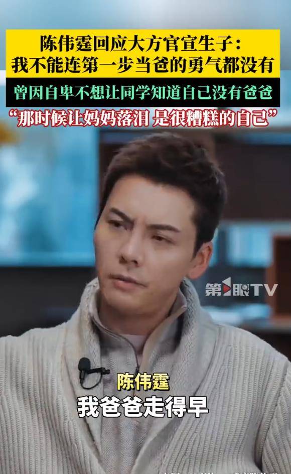 这一坦荡态度,与其个人成长经历密切相关。陈伟霆13岁时父亲早逝,青少年时期曾因自卑,不愿让同学知道自己没有爸爸,甚至做出过拒绝母亲到校观看演出、令母亲落泪的往事,他至今回想仍自责“很差劲”。成为父亲后,他决心彻底打破这种阴影,通过公开宣示为孩子构筑完整的安全感,并开始重新审视自己。