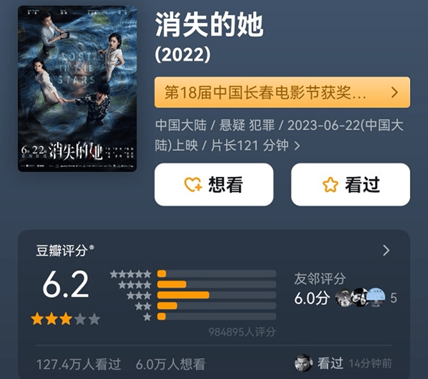 像过去《孤注一掷》《消失的她》《独行月球》《这个杀手不太冷静》《姜子牙》《西虹市首富》《疯狂的外星人》《飞驰人生》《烈火英雄》《羞羞的铁拳》《西游伏妖篇》《前任3》《功夫瑜伽》《港囧》《美人鱼》《捉妖记》这种豆瓣评分在7分以下,甚至6分以下的电影成为年度爆款的现象会越来越少。