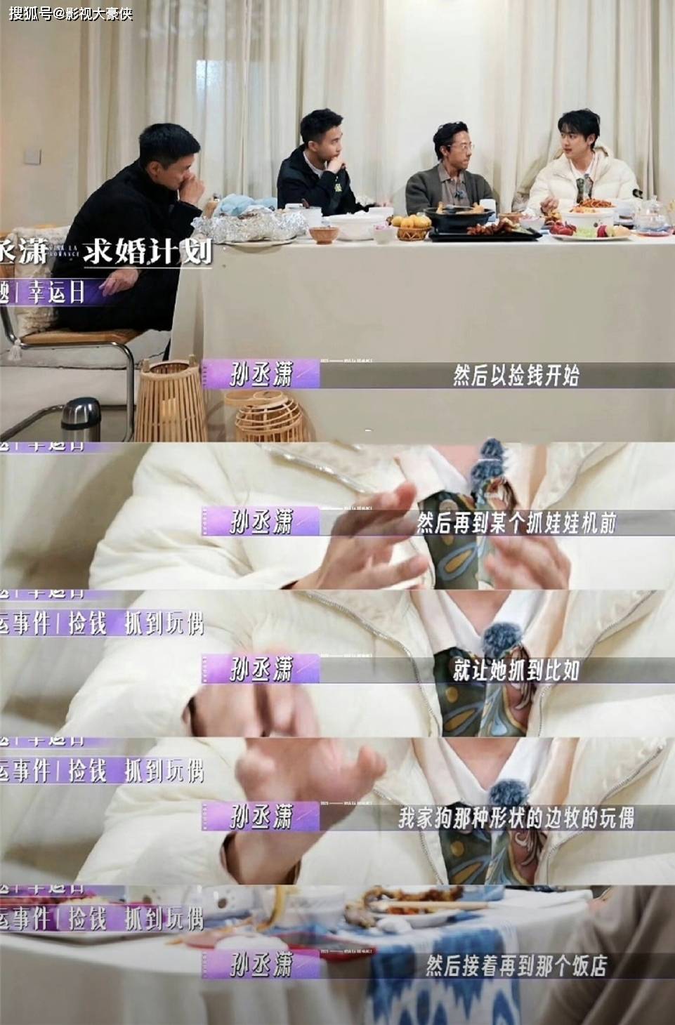 而且早在23年,孙丞潇就有了求婚打算,当时他就设计了整个求婚计划,就是设置一个幸运日的主题日,早上起来陪金莎逛街就开始捡到钱,然后抓玩偶抓到了自己家养的边牧玩偶,接着到饭店被说你们是幸运的多少号客人,晚上看到别人求婚,然后我就问她你羡慕吗,如果她说羡慕的话,我就说哥们戒指给我吧,就这样飞过来求婚。如今这段畅想终于实现了。