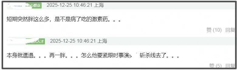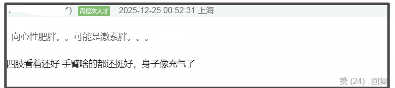 看到王传君的变化,有网友表示他可能真的生病了,并不是因为嫌弃新剧番位被压跑路。根据其四肢纤细其他部位肥胖的情况,有网友称这种充气状很像向心性肥胖的状态,都是腰围增粗肚子突出。