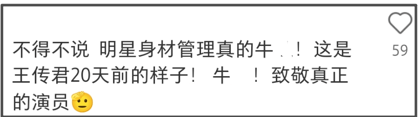 还有网友表示王传君20天前看着也不胖,感慨演员的身材管理强。当时他和郑恺一起亮相,打扮和以前并无两样,面部看起来还有些偏瘦,骨骼感很明显,下巴也很尖。没想到短短一个月的时间,王传君就彻底大变样。