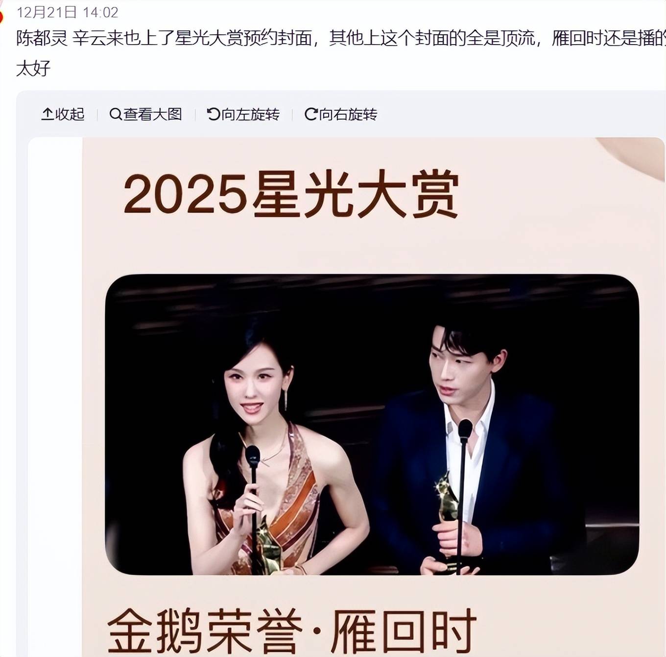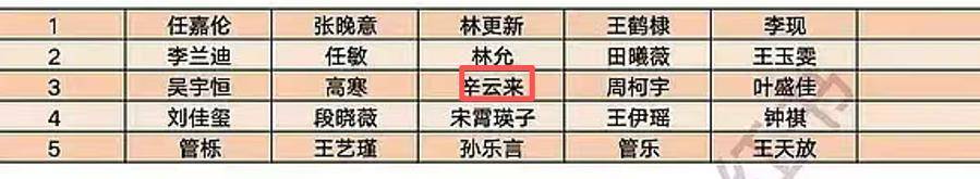 辛云来去年在电视剧圈毫无名气,靠着电影票房实绩,勉强坐到第3排,今年有了《雁回时》这部爆剧,座位升到第二排,也算是升咖了。