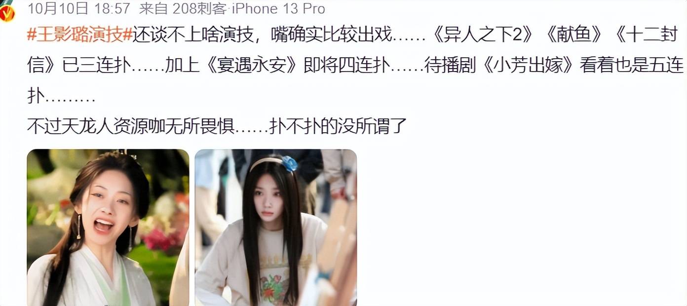 但也不怪网友对她有偏见,她今年资源不错,但大制作的古装剧都能拍扑街,还拍出了三连扑,很难把她的实绩和这次靠前的位置对上号。